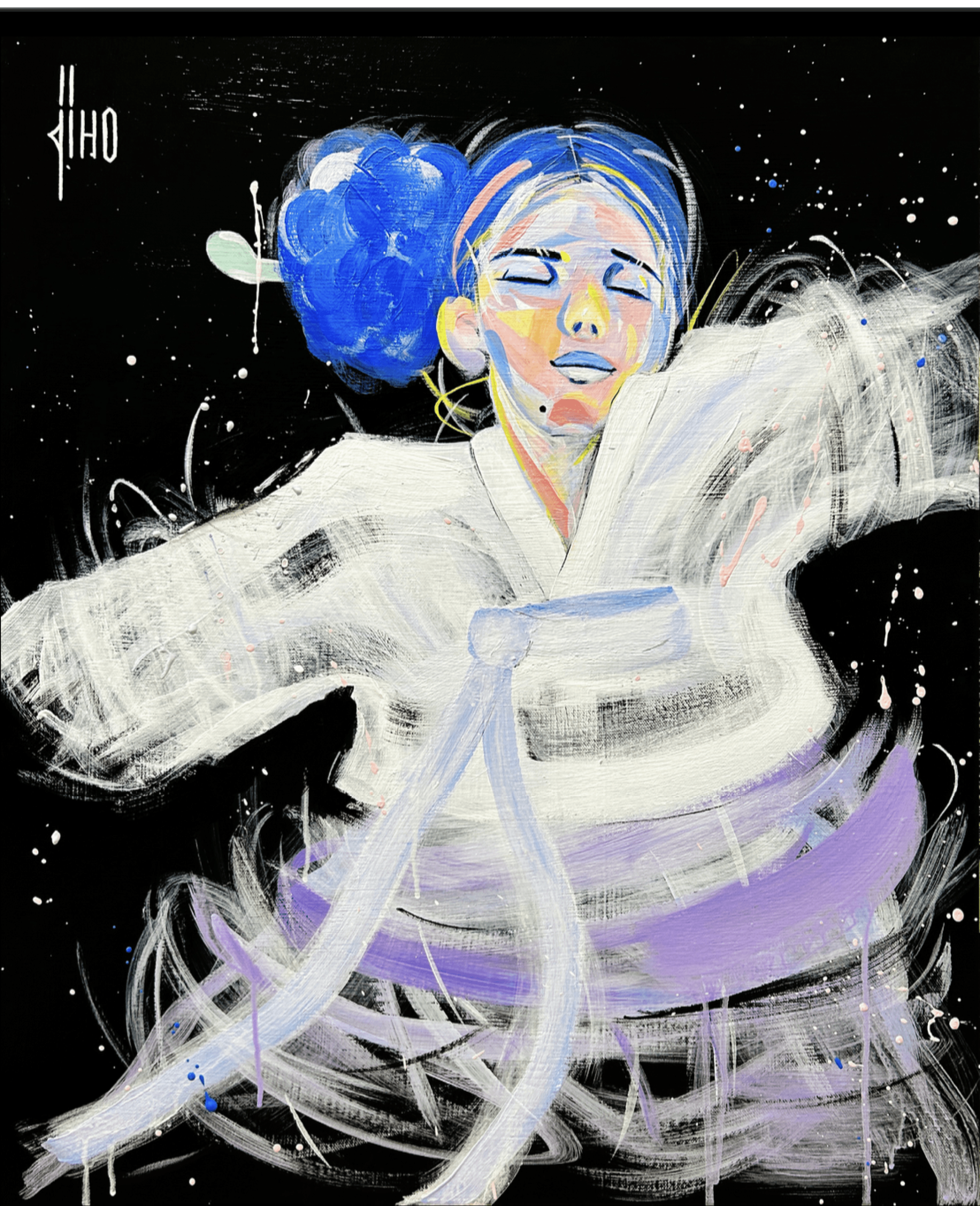 As an homage to David Jamin, I recreated 〈à la nuit〉, transforming the dancing dandy into a Korean woman in hanbok, dancing freely in the night.