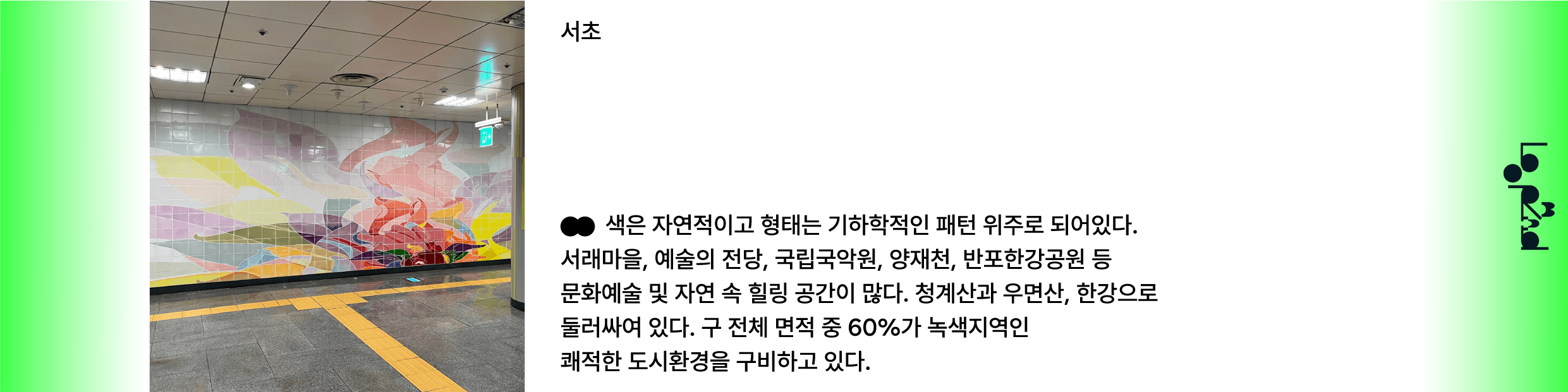 노선도에서 역의 위치를 시각화한 구성으로, 각 역의 위치에 맞춰 로고 베리에이션을 지정한다.